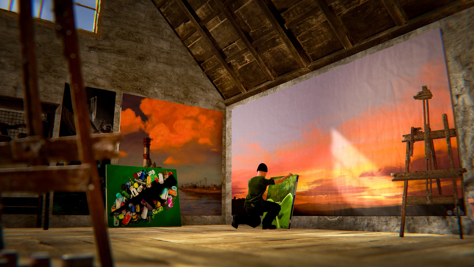 Fixed Adobe wall frame displaying wood impact decals